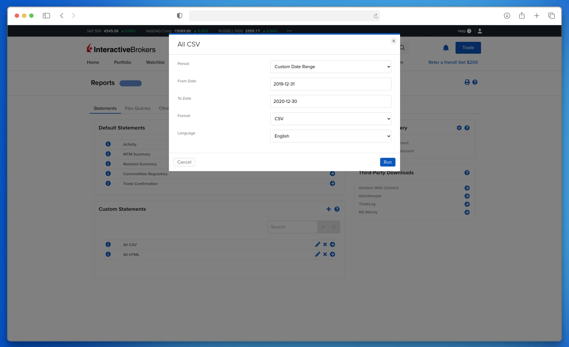 1. Iniciar sesión en el portal del cliente Interactive Brokers.