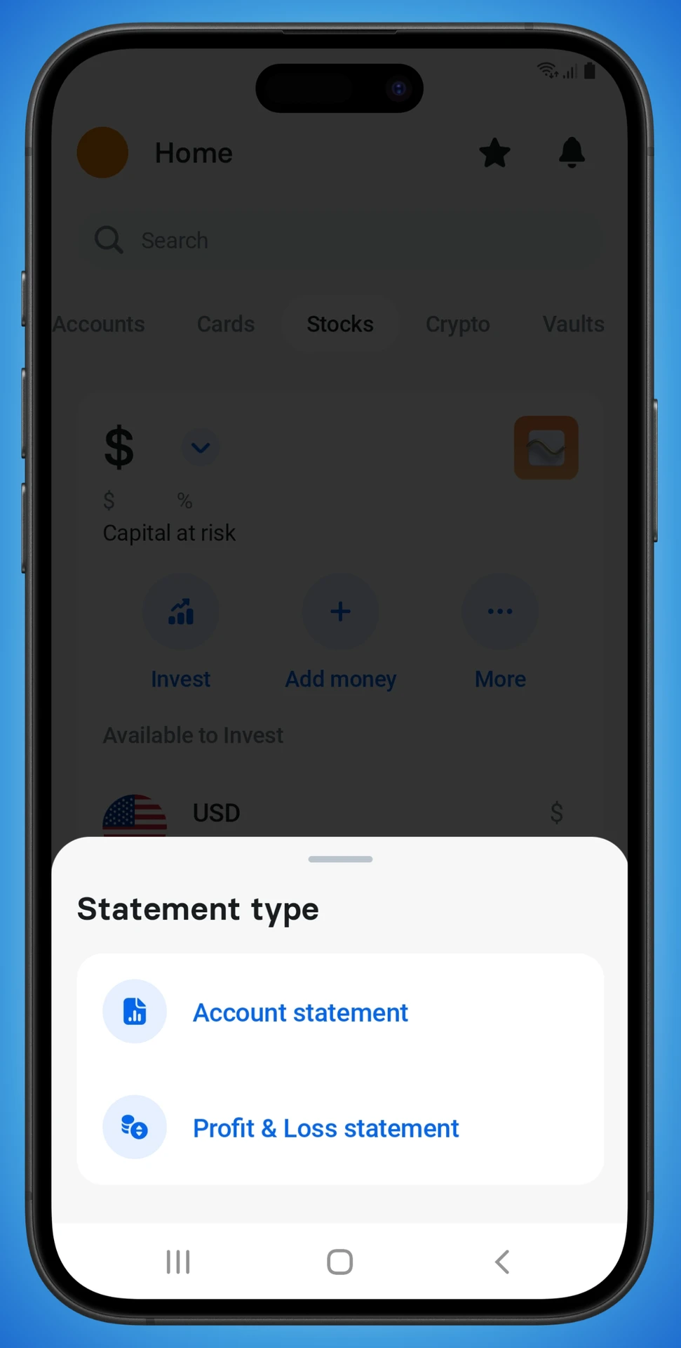 2. A continuación, seleccione la sección “More”, luego vaya a “Statements” y seleccione “Account statement”.