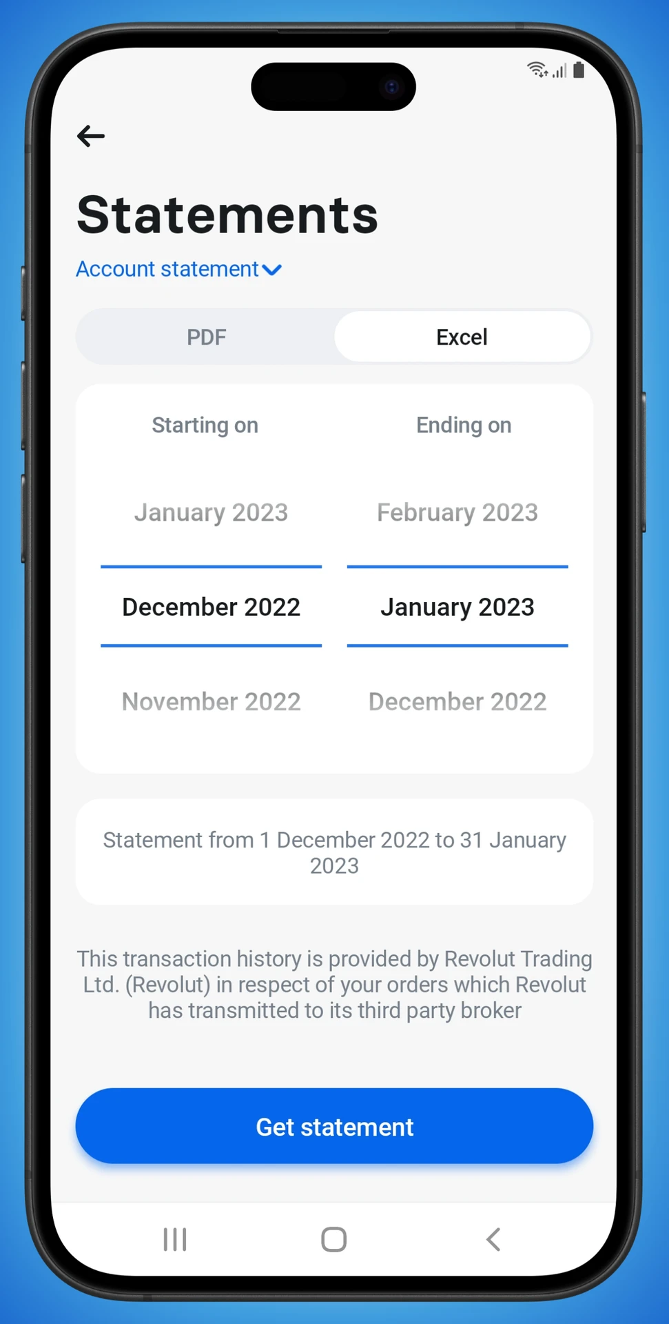 4. Haga clic en Get statement de cuenta y descargue el archivo resultante