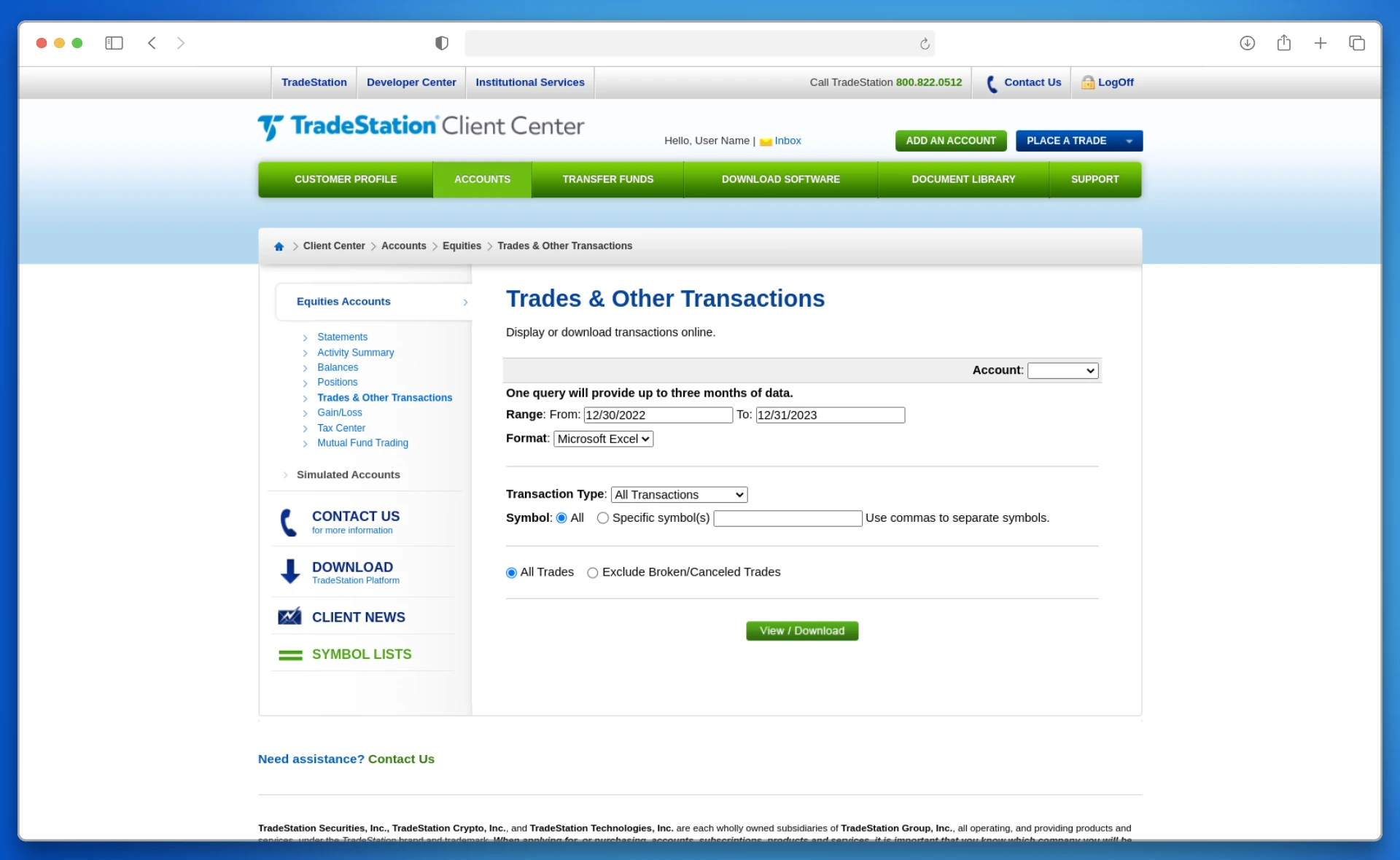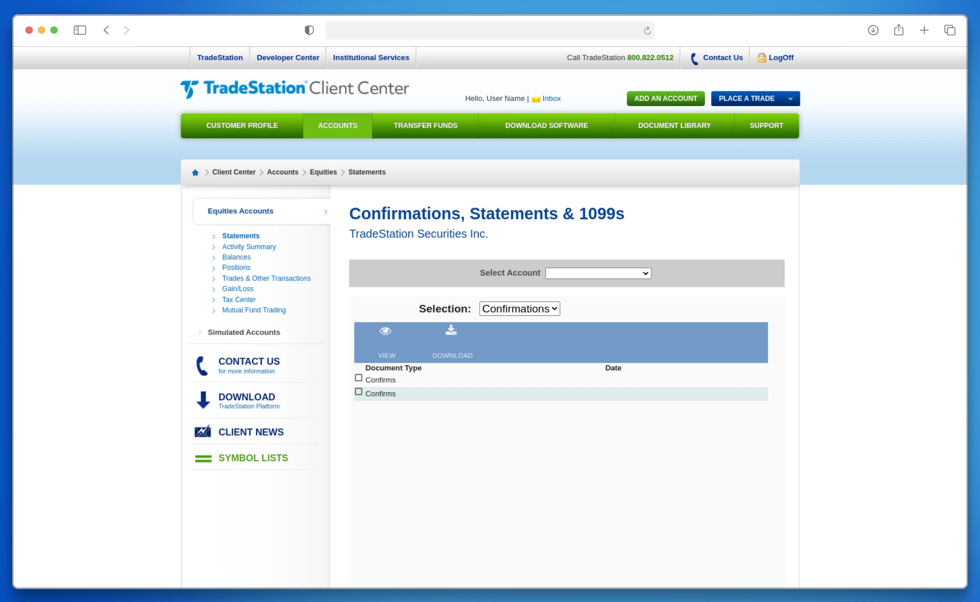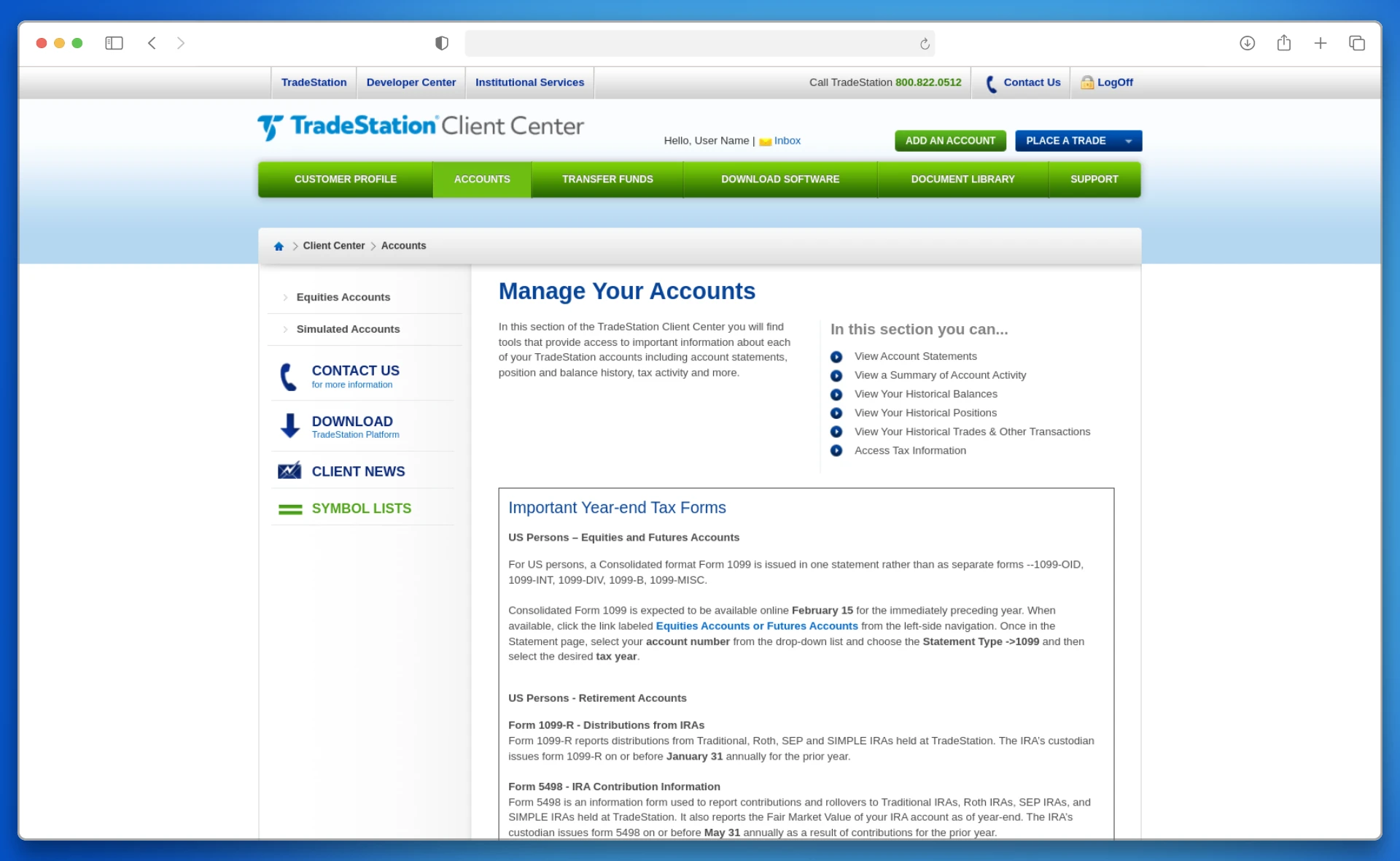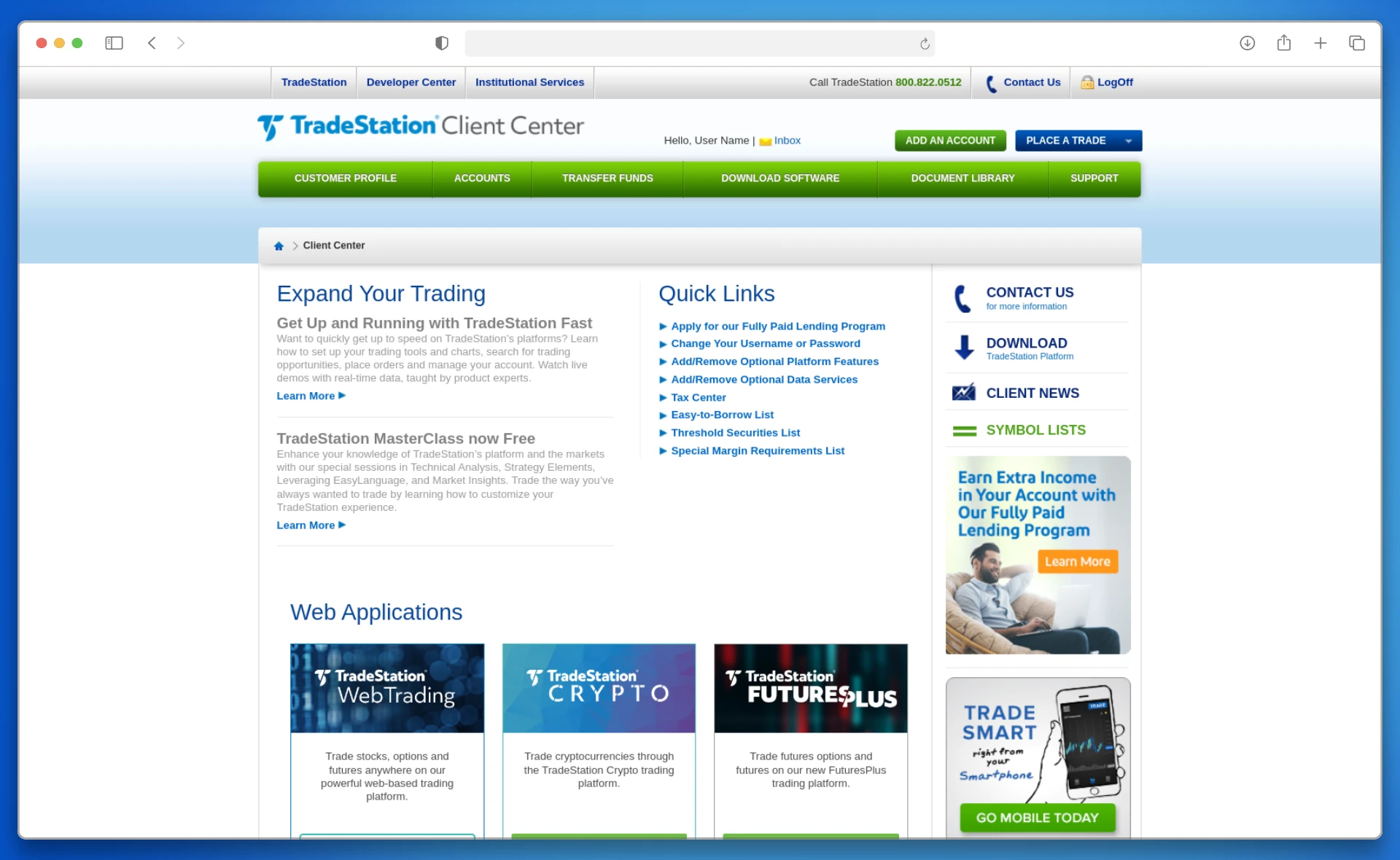 1. Inicie sesión en el sitio web del bróker a través de un navegador (tradestation.com), Log In → Client → CenterLogin.
